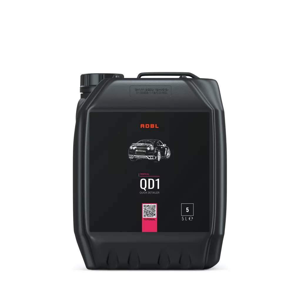 Az ADBL QD1 egy polimerekből és szintetikus waxokból álló quick detailer. Gyorsan és könnyen eltávolítja a port, az ujjlenyomatokat és a vízfoltokat. Nagyon finom illata van, gyorsan párolog és nem hagy használat után csíkokat. Hatékonyan kitölti a mosókarcokat, így a kezelt autónak óriási fényt nyújt a következő mosásig. Célszerű minden autómosás után használni.